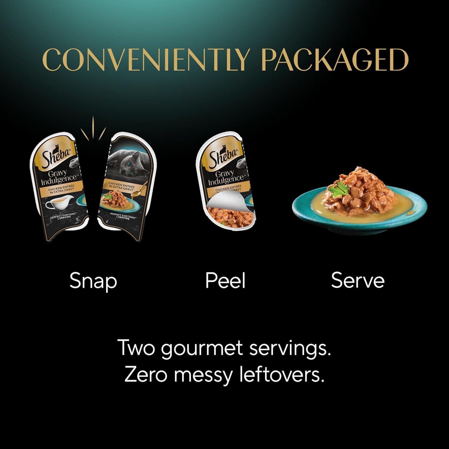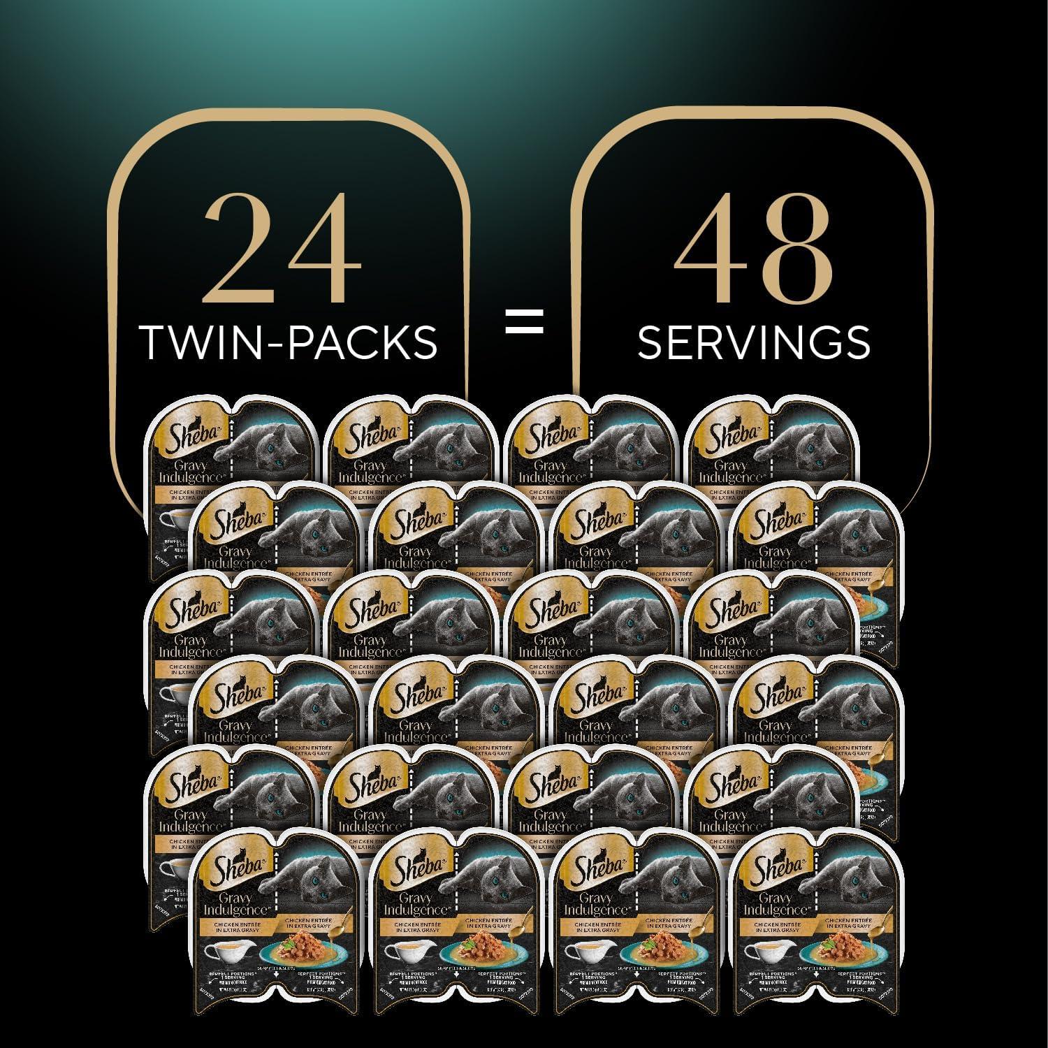 Sheba Gravy Indulgence Adult Wet Cat Food Salmon Entree and Whitefish Entree in Extra Gravy Variety Pack, 2.6 oz. Twin-Pack Trays, (12 Count, 24 Servings) (Pack of 2)(Chicken)