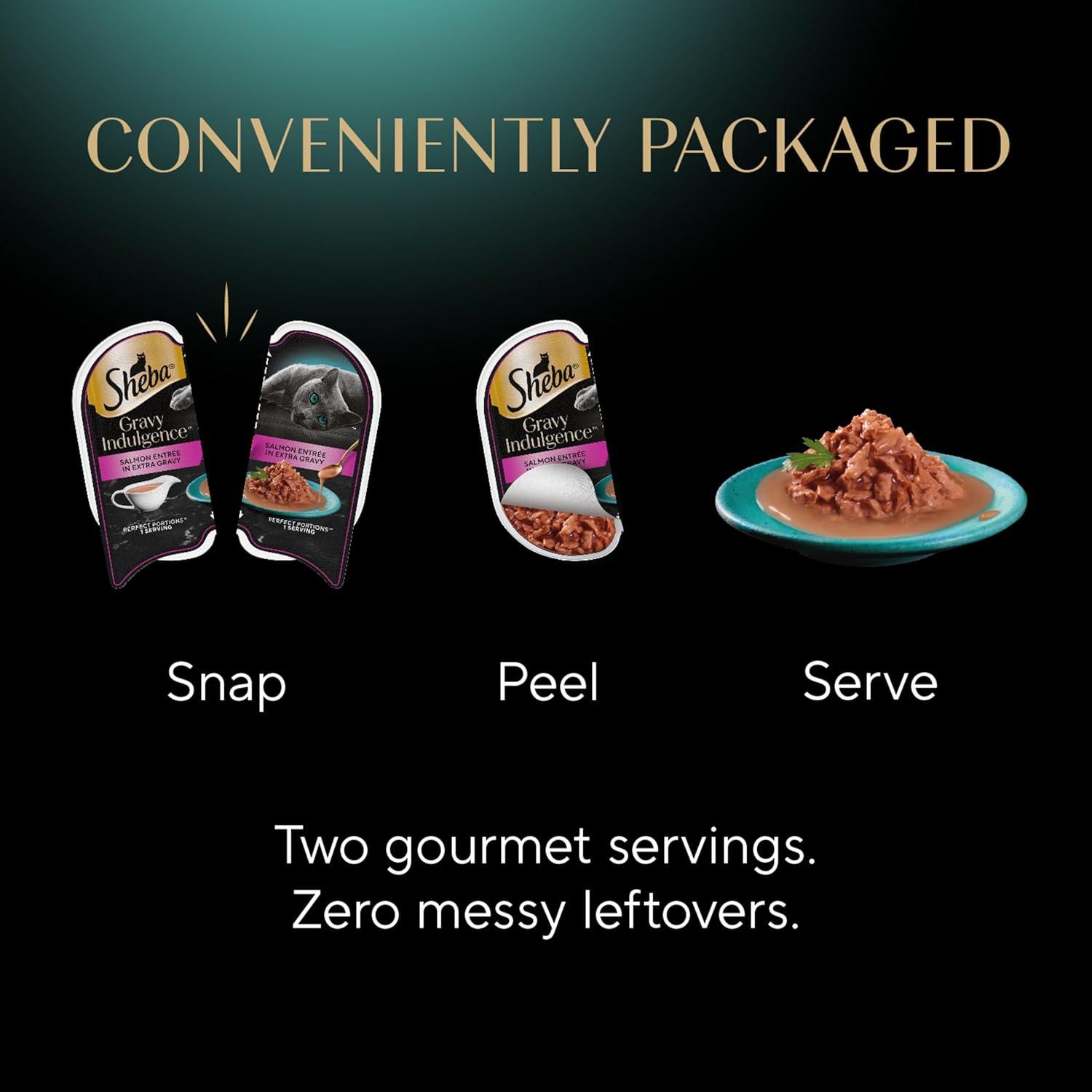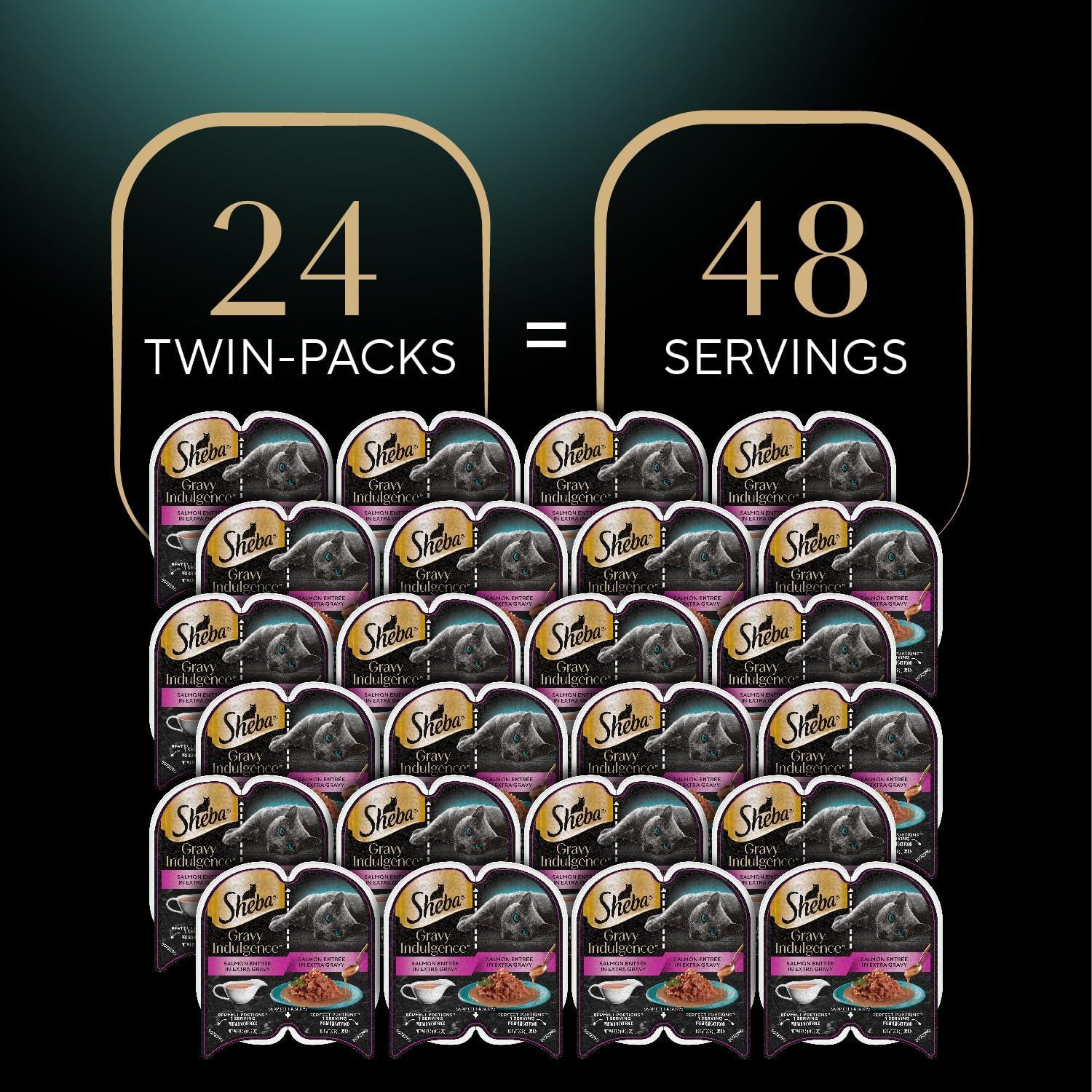 Sheba Gravy Indulgence Adult Wet Cat Food Salmon Entree and Whitefish Entree in Extra Gravy Variety Pack, 2.6 oz. Twin-Pack Trays, (12 Count, 24 Servings) (Pack of 2)(Salmon)