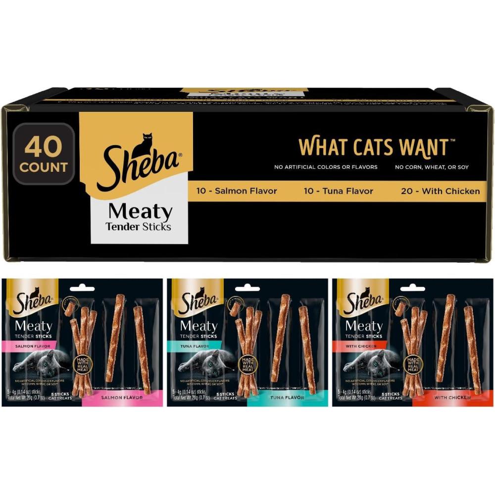 Savory Snack: Each Sheba Meaty Tender Stick is individually wrapped to help maintain flavor so your cat can enjoy a soft and savory snacking experience