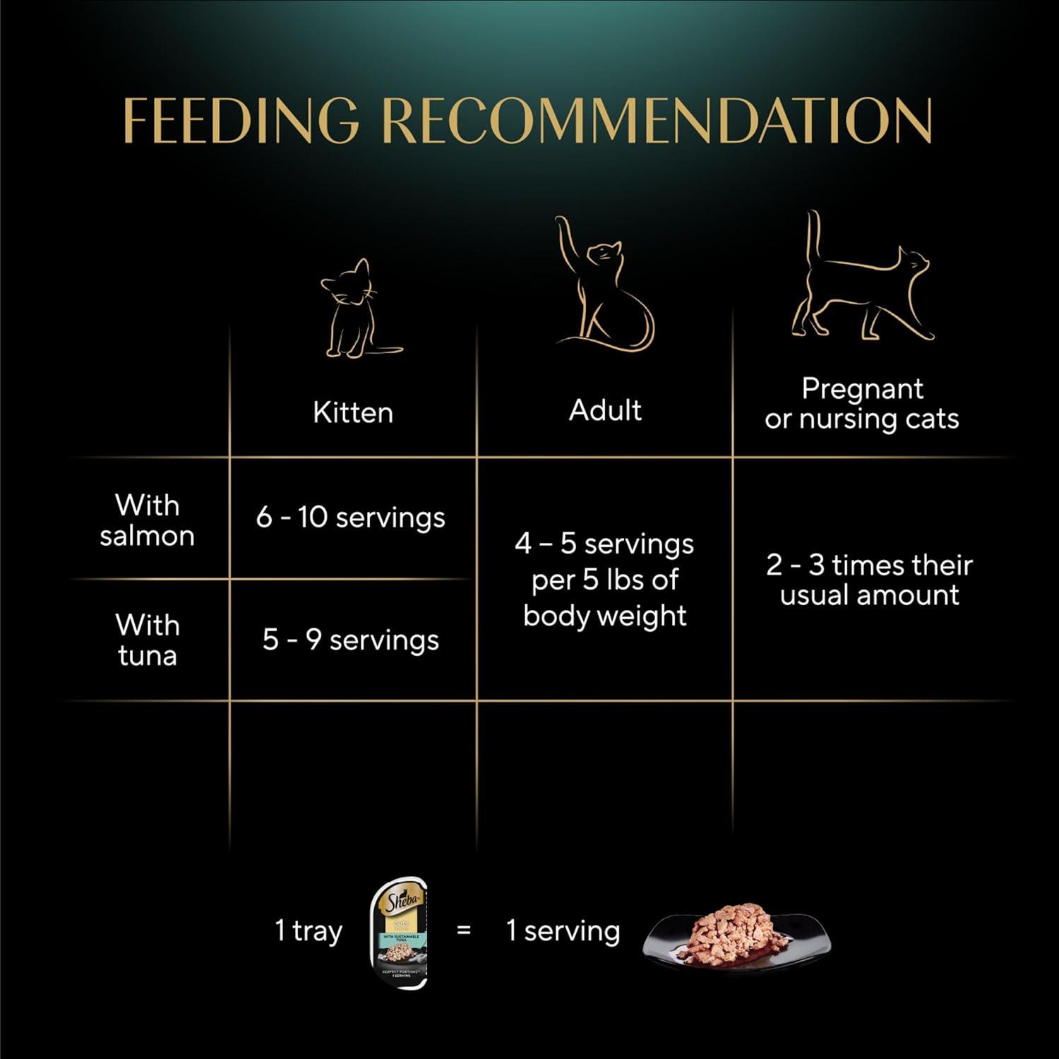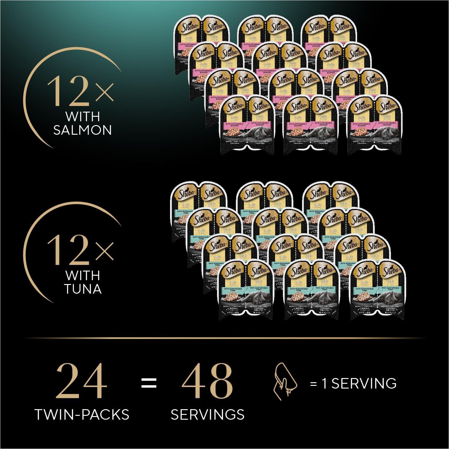 Sheba Perfect Portions Wet Cat Food Cuts in Gravy Variety Pack, Roasted Chicken Entree, with Sustainable Tuna, and Tender Turkey Entree, 2.6 oz. Twin-Pack Trays (36 Count, 72 Servings)(Salmon & Tuna)