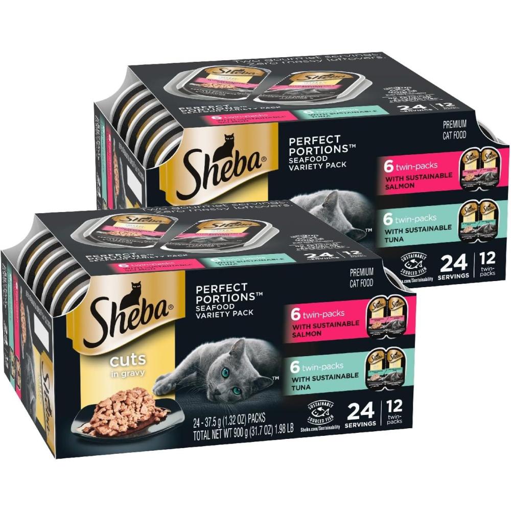 Cats know what they want: the delicious taste of Sheba Perfect Portions Wet Cat Food Cuts In Gravy. The succulent cuts of roasted Chicken, with sustainable Tuna, or tender Turkey in a delicious gravy deliver a wet cat food your feline will love. Sheba Perfect Portions Wet Cat Food has two convenient, portioned trays for a delicious serving with zero messy leftovers every time. Sheba Wet Cat Food is formulated without grains, corn, or soy and contains no artificial flavors or preservatives; although trace amounts may be present due to cross-contact during manufacturing. Even the pickiest cat is sure to enjoy it. Savor every delicious moment with Sheba Wet Cat Food Cuts in Gravy.