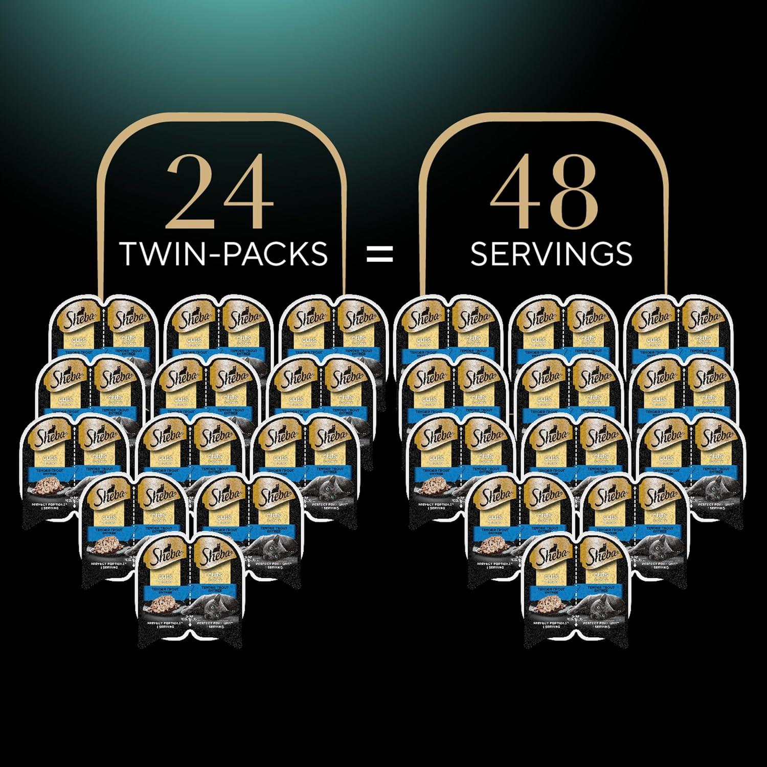 Sheba Perfect Portions Wet Cat Food Cuts in Gravy with Roasted Chicken Entree, 2.6 oz. Twin-Pack Trays (24 Count, 48 Servings)(Trout)