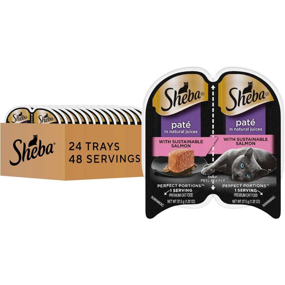 Sheba Perfect Portions Wet Cat Food Pate Savory Chicken Entree, 2.6 oz. Twin-Pack Trays (24 Count, 48 Servings)(Salmon)