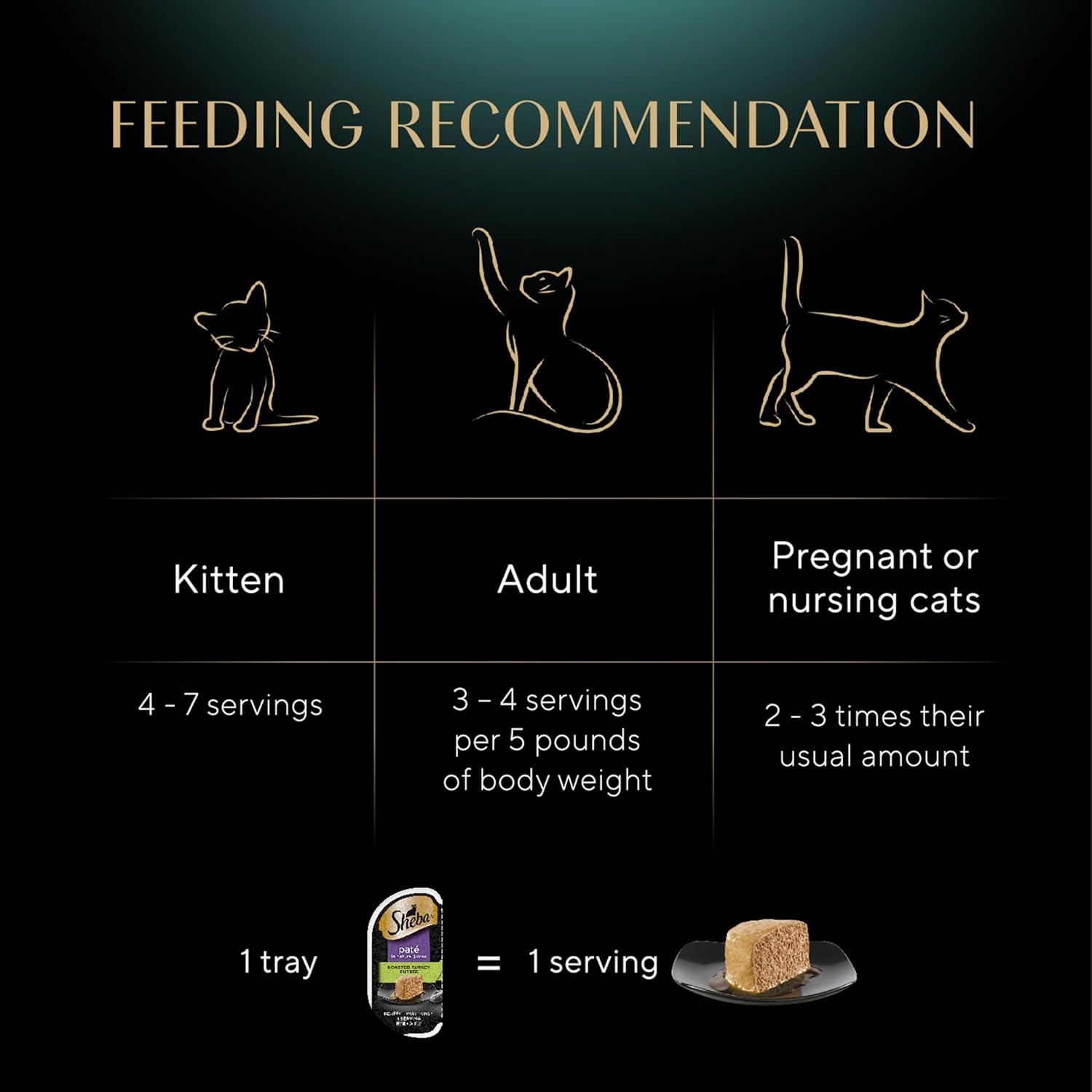 Cats know what they want: the delicious taste of Sheba Perfect Portions Wet Cat Food Pate. The savory pate wet cat food recipe is made with savory Chicken and is complete and balanced for all life stages. Sheba Perfect Portions Wet Cat Food has two convenient, portioned trays for a delicious serving every time with zero messy leftovers. Even the pickiest cat is sure to enjoy it. Sheba Wet Cat Food is formulated without grains, corn, or soy and contains no artificial flavors or preservatives, although trace amounts may be present due to cross-contact during manufacturing. Your cat will savor every delicious moment with Sheba Perfect Portions Wet Cat Food Pate.