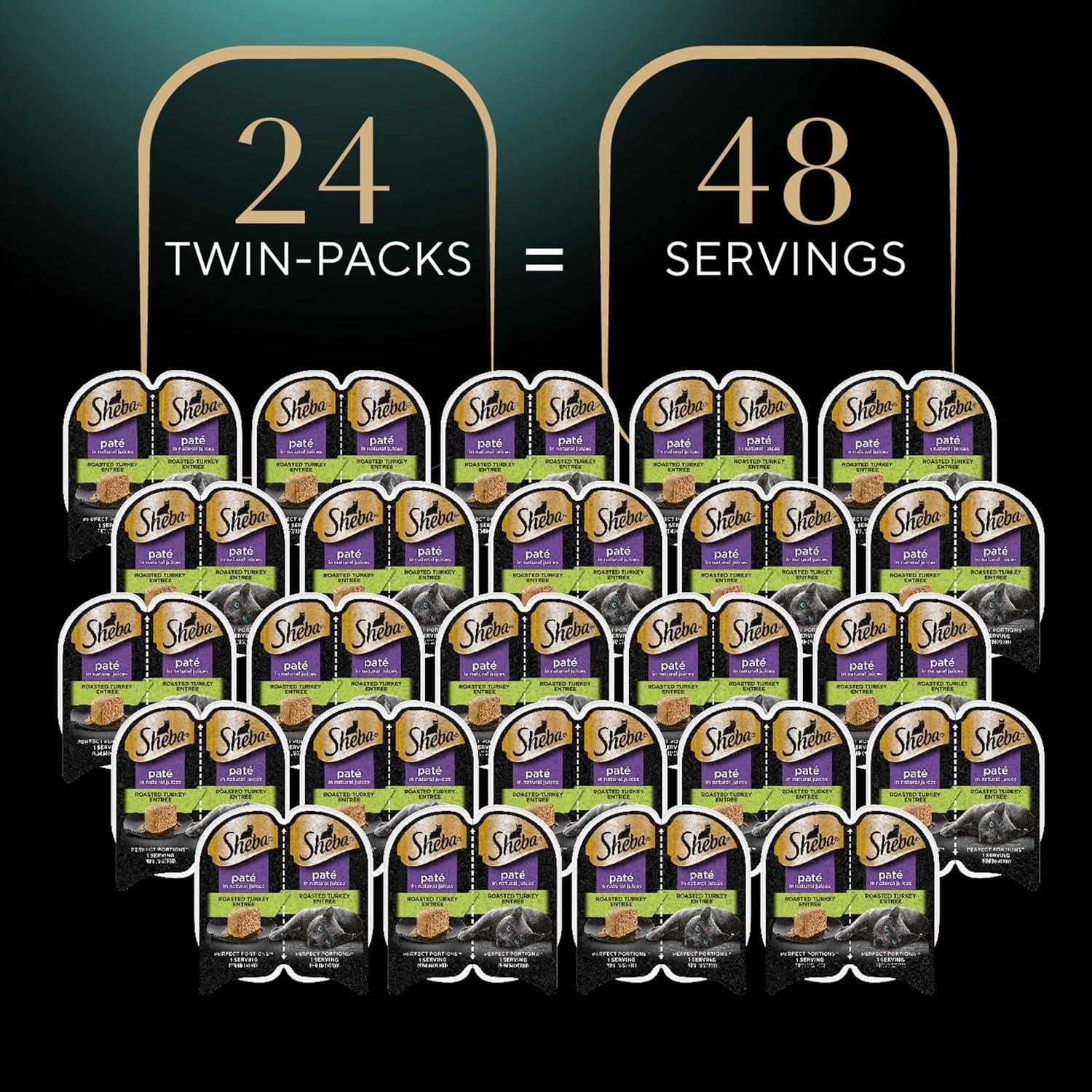 Sheba Perfect Portions Wet Cat Food Pate Savory Chicken Entree, 2.6 oz. Twin-Pack Trays (24 Count, 48 Servings)(Turkey)