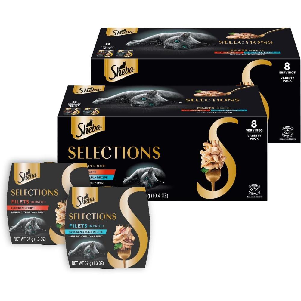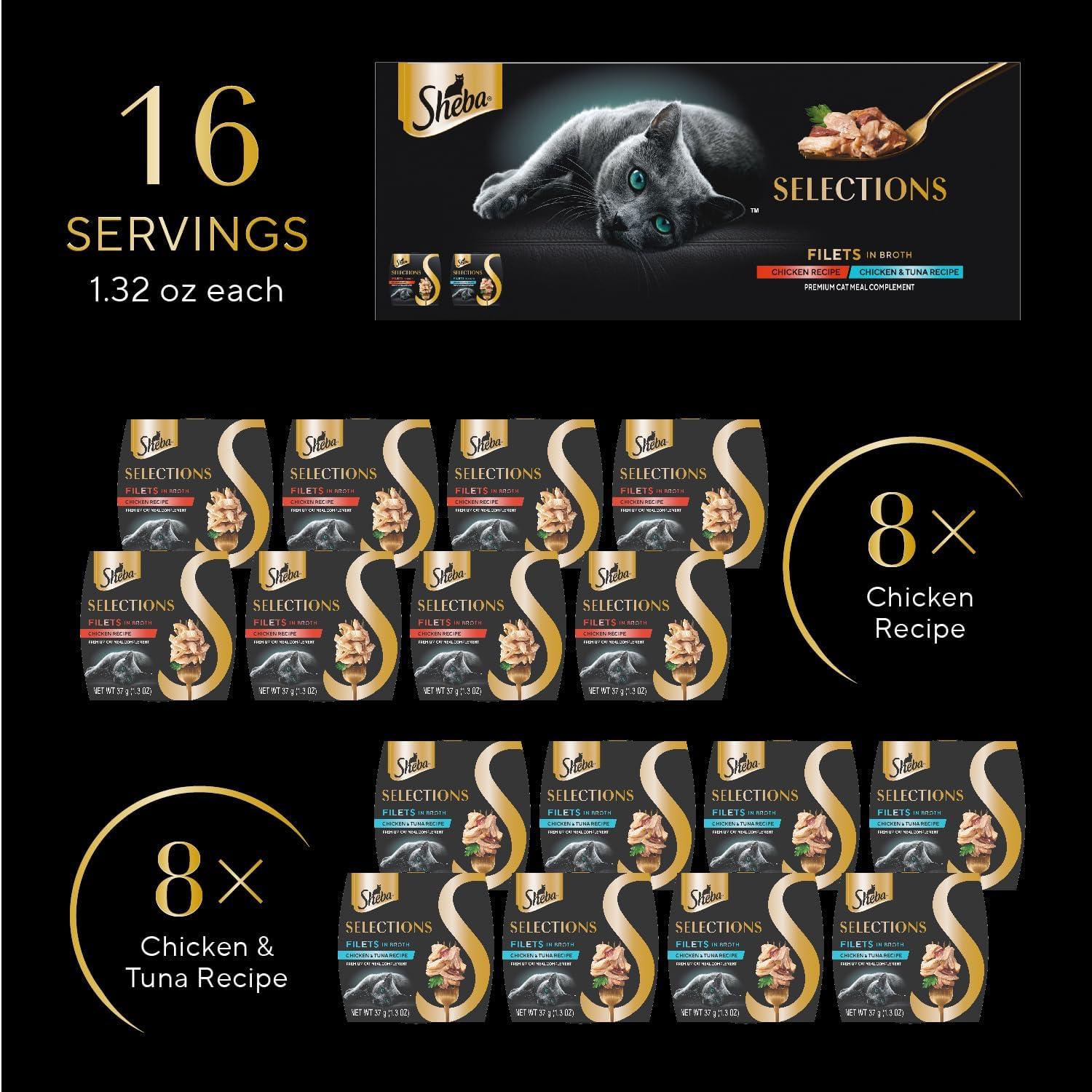 Sheba Selections Filets in Broth Adult Wet Cat Meal Complement Chicken & Tuna Recipe, 1.3 oz. Cups, 12 Count(Variety: Chicken and Tuna)